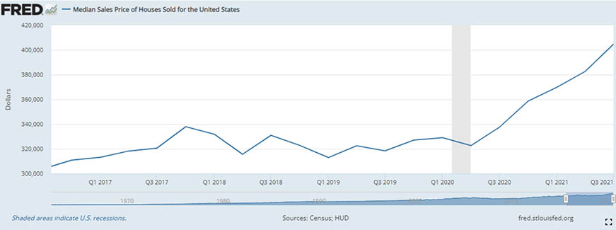 The housing prices were showing signs of stabilization or in other words stagnation in the market prior to 2020. The first quarter of 2020, marks the Covid-19 induced economic recession that gripped the global economy. The trend in the housing prices from the second quarter of 2020 shows a steep rise in median housing prices.